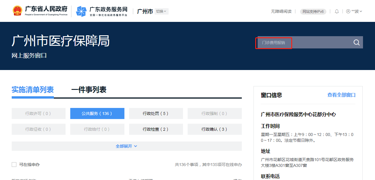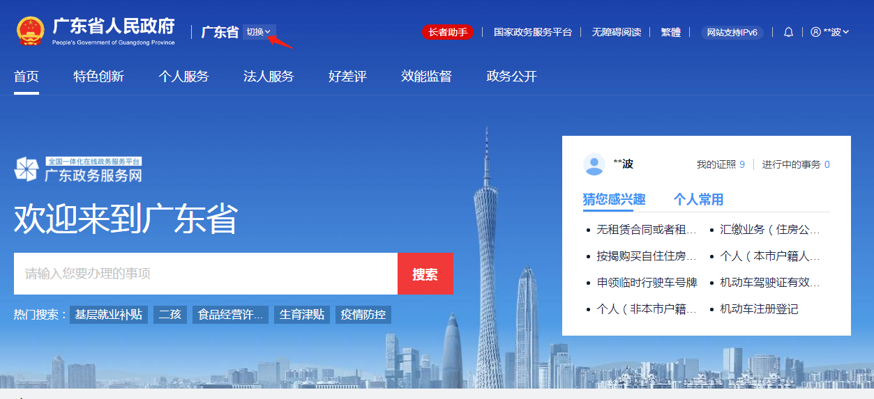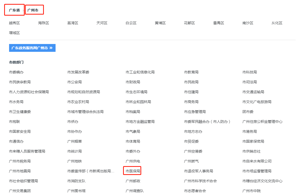 2.点击“切换区域和部门”,选择“广州市-市医保局”