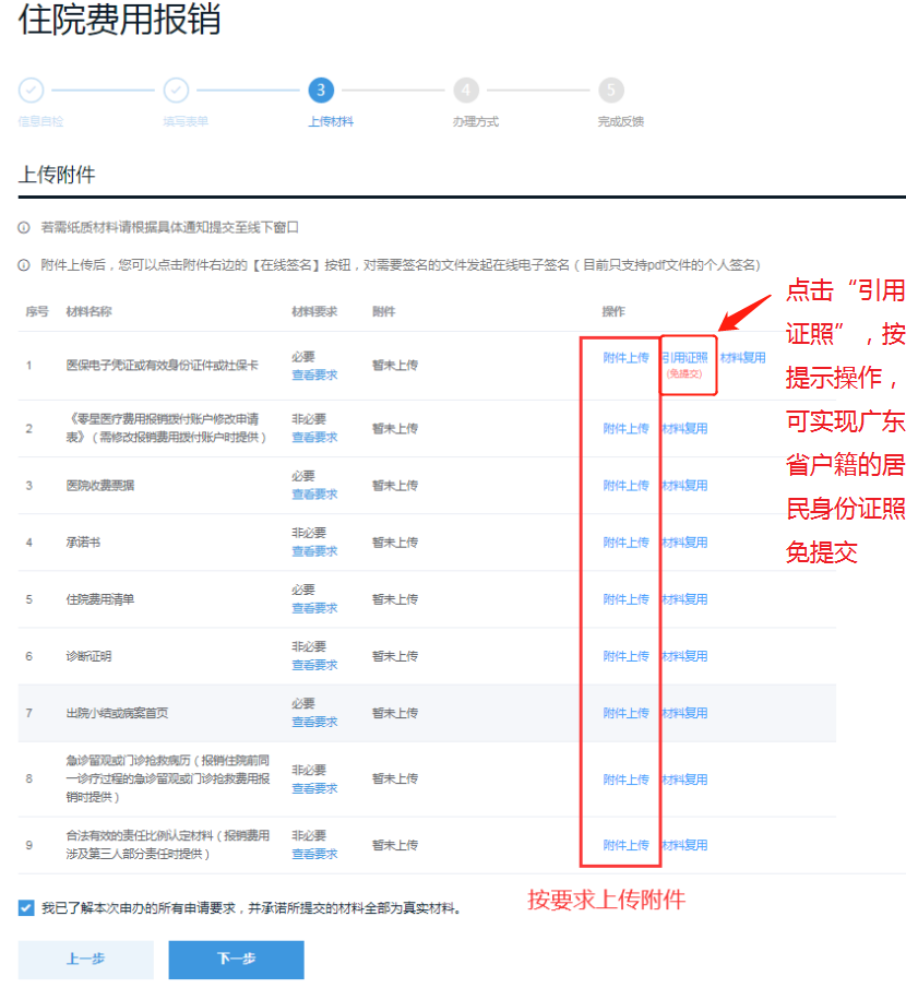7.在上传资料界面,将所需要的资料照片或扫描件按要求进行上传。
