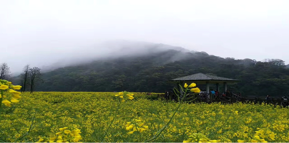 春之旅第一站;石灶赏花观雾。当日,阳光弃我,然云雾缭绕,宛若昆仑虚仙境,美不胜收。在云雾缭绕山景的辉映下,石灶景区内的天池油菜花田更显一份朦胧之美。满目的油菜花田伴着天池延绵,而隔天池相望的则是那薄雾中的1.6万亩原始次生林,油菜花田那浓烈饱和的鲜黄犹如绿色翡翠中的一道耀眼光芒,那便是 "石门黄金花海"。