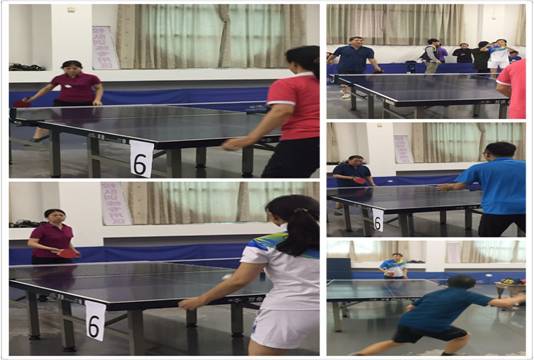 为发展国球运动,丰富门诊职工生活,加强职工们对乒乓球的更大兴趣,门诊工会第一次组队参加了学校于 2017 4 22 在体育部乒乓球场举办的乒乓球比赛