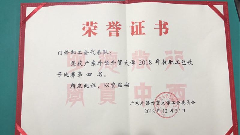门诊工会代表队获全校教职工包饺子比赛第四名
