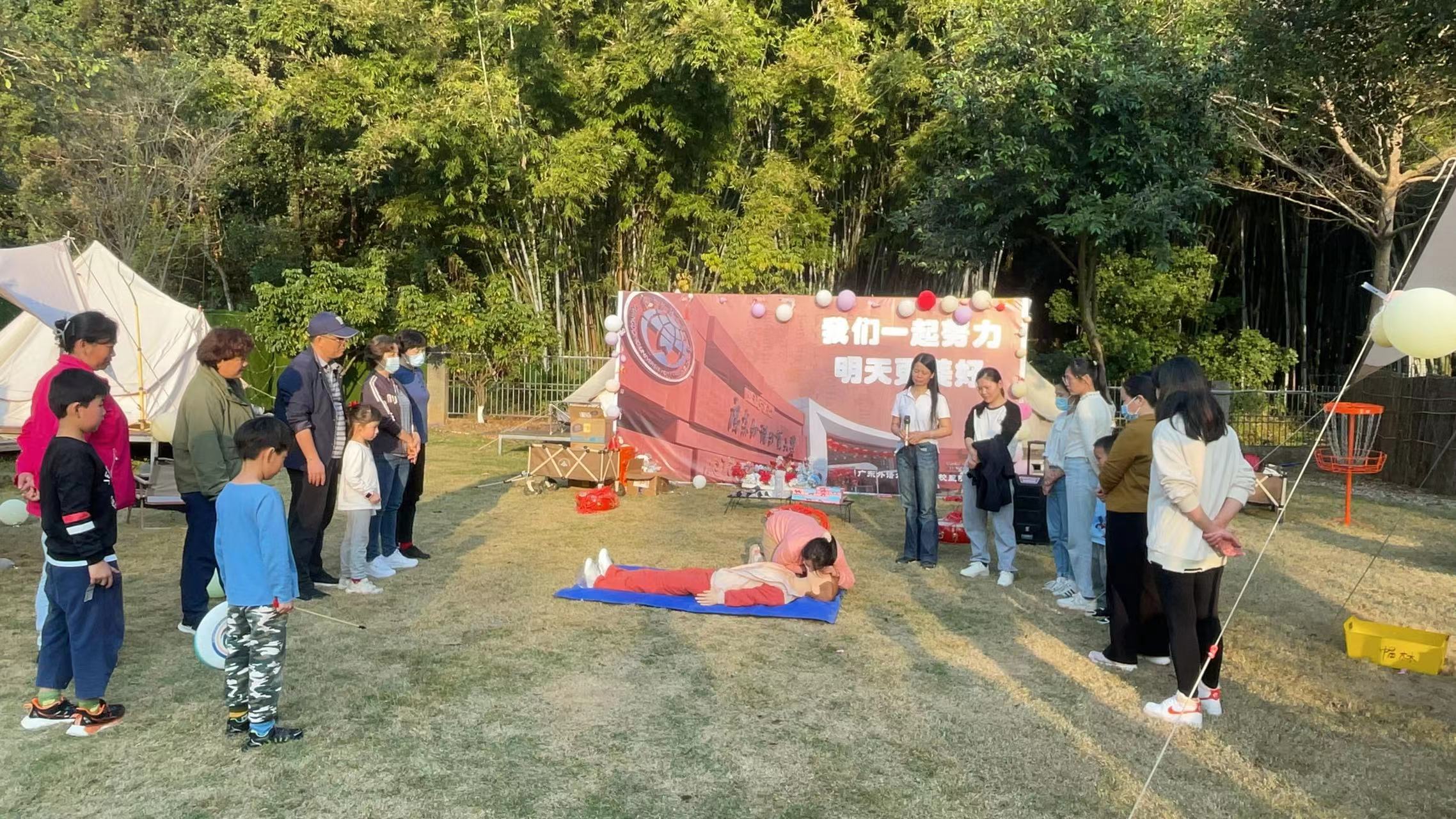 结束钱岗古村的游览后,大家驱车来到了帽峰营地。营地活动的前半场为自由活动,大家或打牌、射箭、玩卡丁车,或围炉煮茶静静休息畅聊,紧张忙碌了整一学期的辛苦迅速切换到此刻的悠闲放松之态。营地活动的下半场为集体活动,伟德国际victor1946工会结合业务工作创新性精心组织了一系列丰富多彩的比赛和游戏活动,如心肺复苏接力赛、二人三足背靠背顶球、击鼓传花答非所问、儿时游戏老鹰抓小鸡、飞盘投篮等。大家在一个接一个的游戏活动现场中欢声笑语,高潮迭起、气氛甚是热烈。