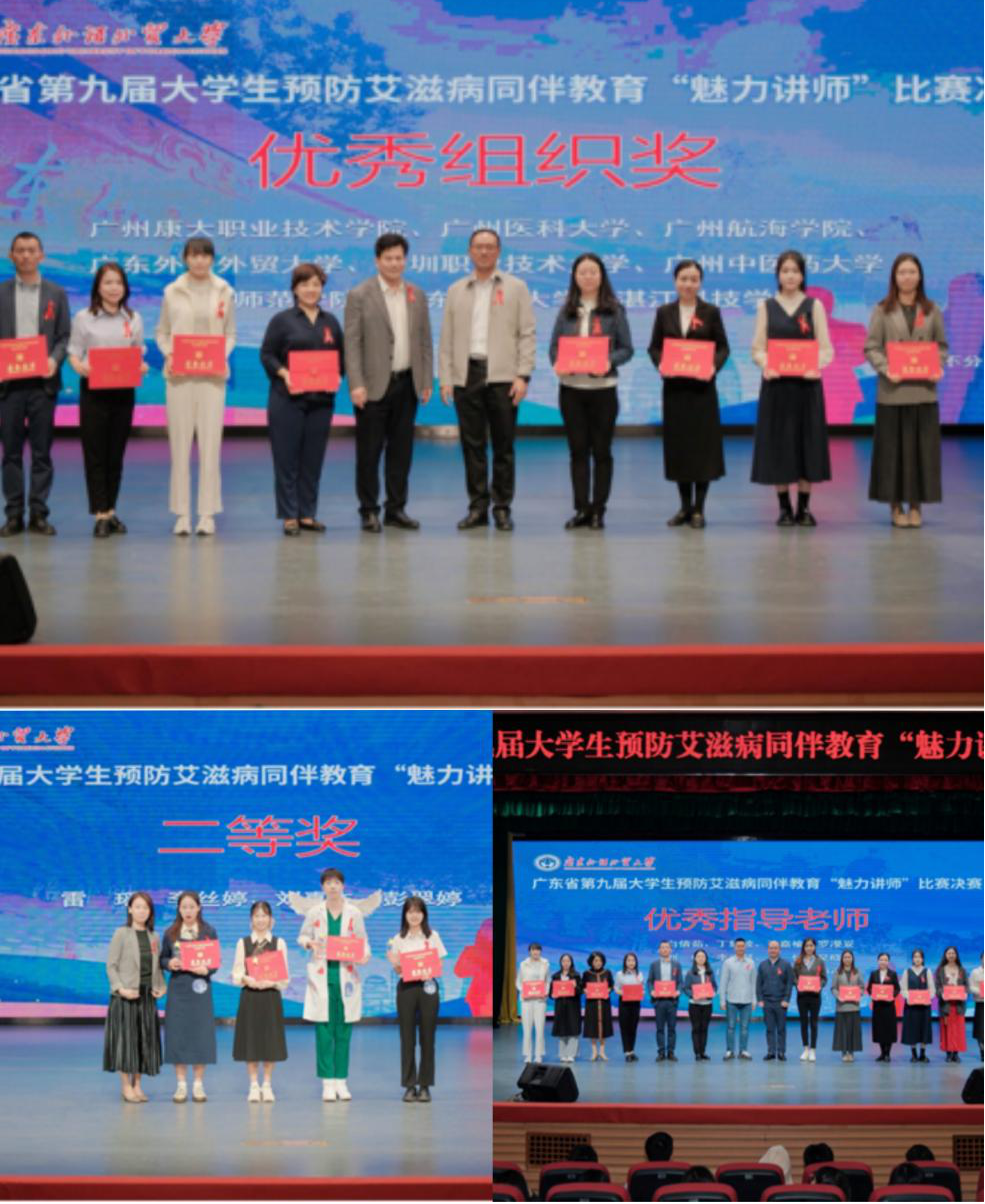 学校荣获广东省第九届大学生预防艾滋病同伴教育“魅力讲师”比赛优秀组织奖,李丝婷同学同伴教育主题课《青春红丝带 防“艾”不防“爱”》获二等奖,校团委吴怡老师获优秀指导老师奖。此赛事由广东省教育厅主办,广东外语外贸大学承办,广东省疾病预防控制中心、广东省性病艾滋病防治协会、广东省性病艾滋病防治协会高校分会、岭南伙伴社区主持中心协办。经过培训、初赛、复赛层层选拔,来自广州中医药大学等9所院校的10名优秀学生讲师从全省330名选手中挺进决赛。