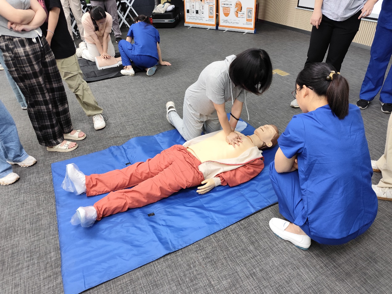 随后的实践操作环节将培训推向高潮。在专业医护人员的指导下,每位参与者都有机会在模拟人上亲自练习胸外按压、开放气道、人工呼吸等CPR核心步骤,体验从识别紧急情况到实施救援的全过程。医护人员耐心纠正动作,确保每位学员都能掌握正确的施救方法。将理论讲解与实操演练巧妙融合的教学方式,不仅极大地加深了同学们的理解与记忆,更在他们心中留下了深刻的实践印记。