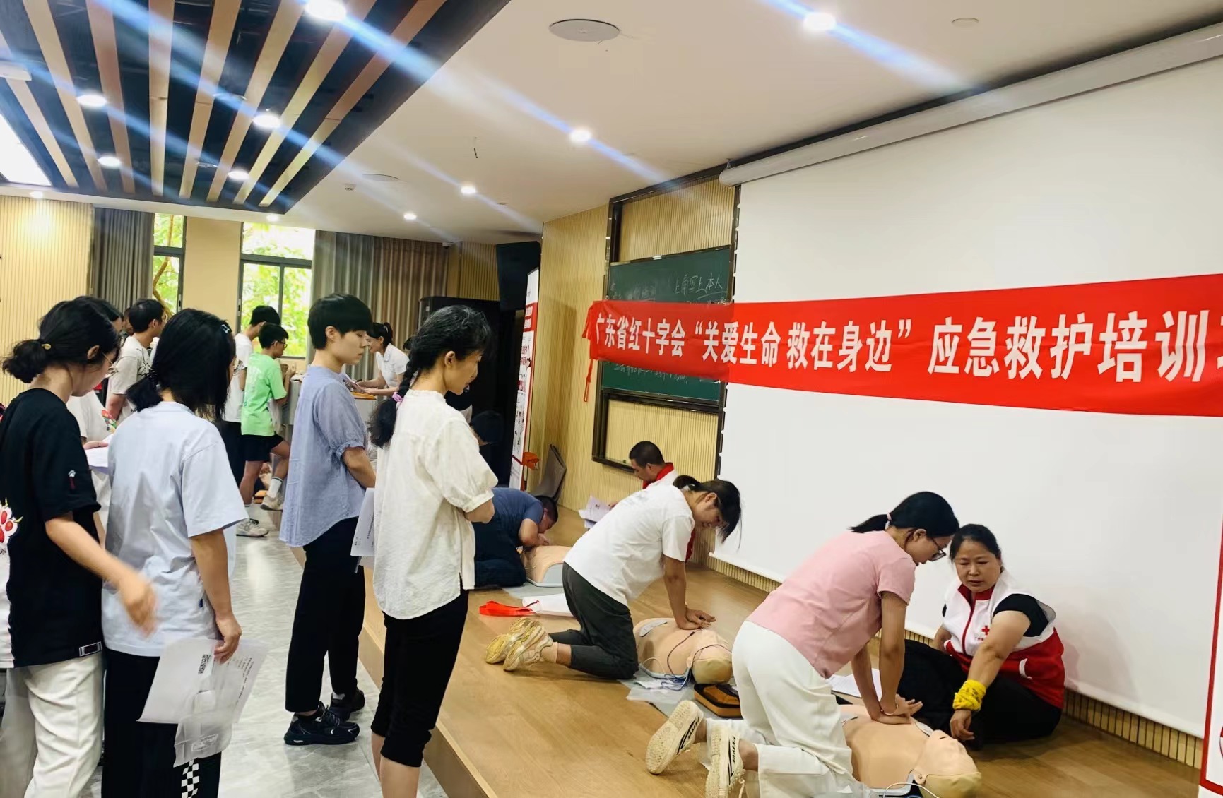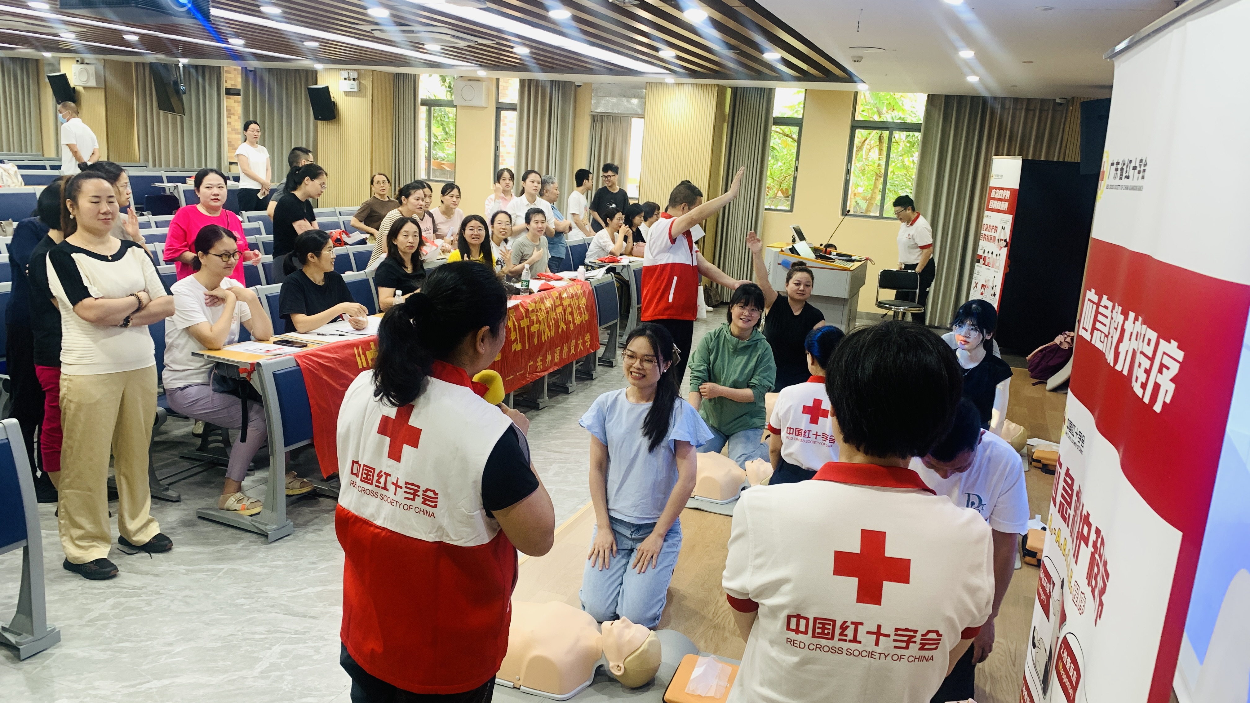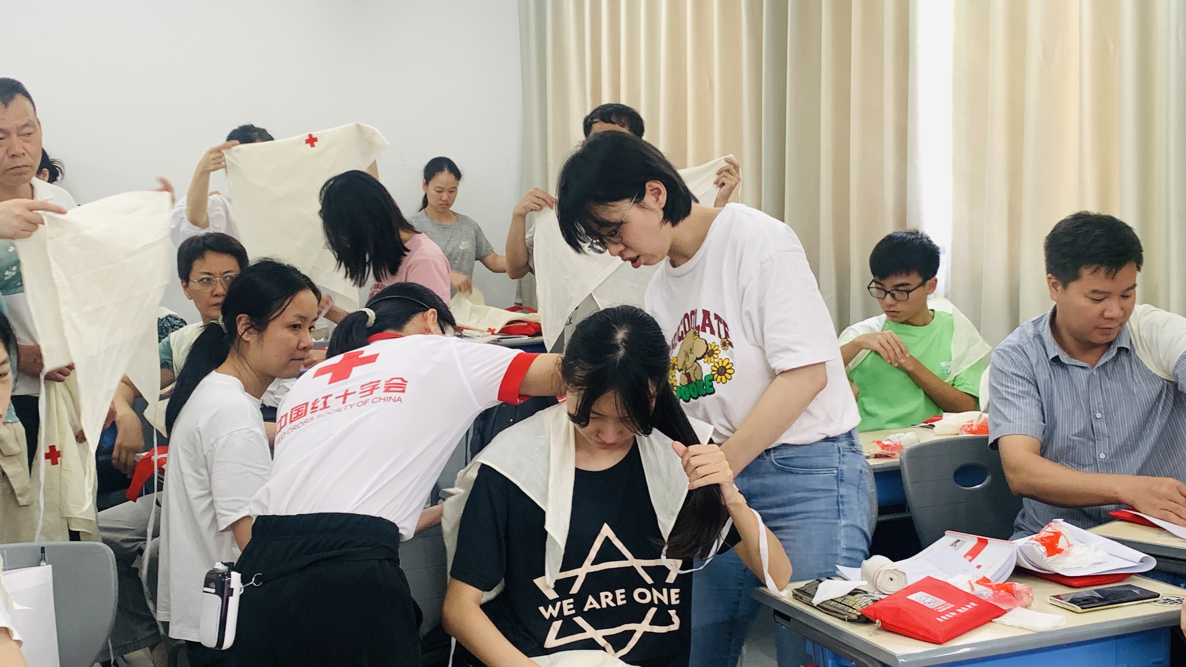 本次将培训分为理论教学和实践操作两个部分。教学内容主要涉及红十字精神、心肺复苏、AED除颤、创伤包扎等急救技能相关理论知识和技术要领。