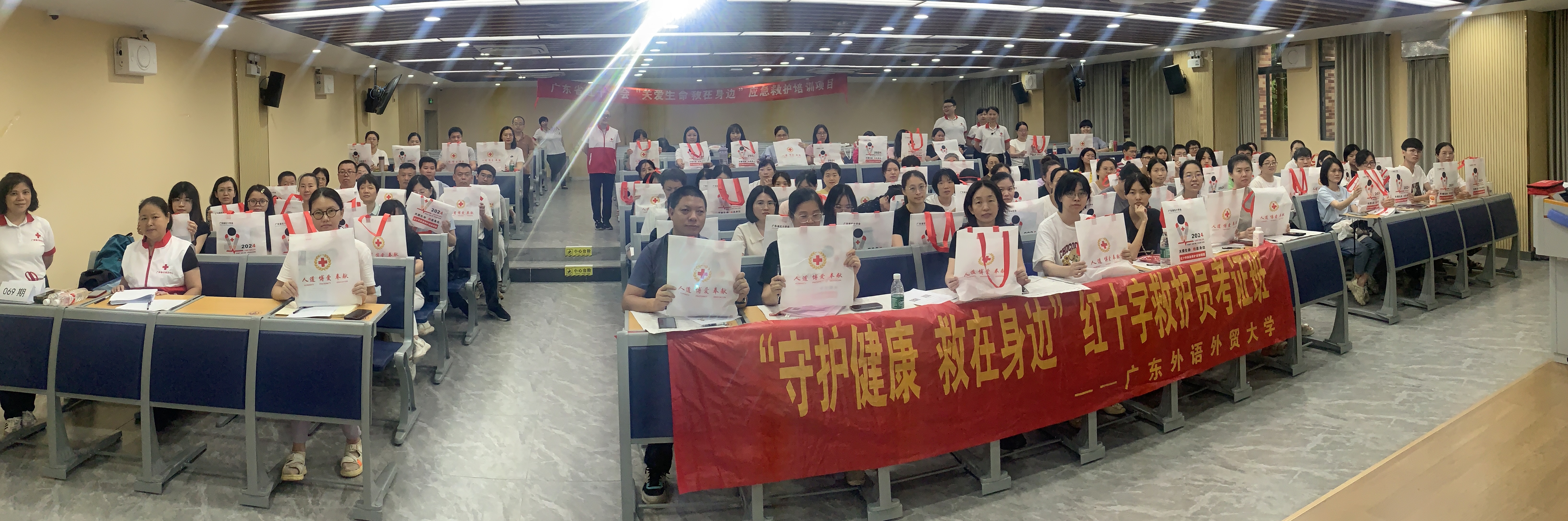 黄金4分钟,心肺复苏术是抢救心脏骤停患者的主要手段,如遇有人突然倒地,判断无呼吸、无意识后,应立即实施心肺复苏术,抓住“黄金4分钟”,抢救越及时,成功率越高。如何提高一线教职员工的应急救护能力,有效应对校园以及生活中遇到的这些突发情况?7月4日,伟德国际victor1946在广东省红十字会、广州备灾救灾中心的大力支持下,邀请东泽培训中心的专业救护导师,为伟德国际victor1946学生工作的一线教职工开展了《红十字救护员》考证培训。