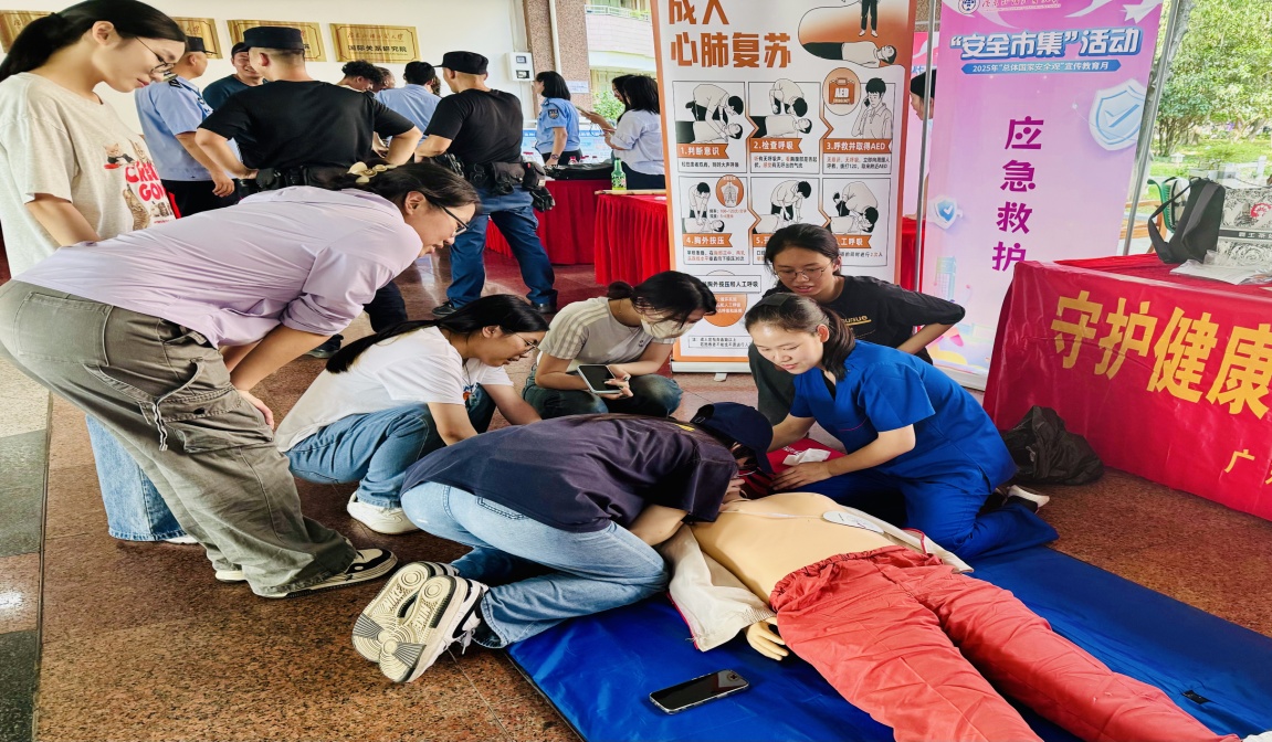 今年是《国家安全法》颁布实施10周年,为深入贯彻落实“总体国家安全观”,提升师生的国家安全意识和防范风险能力,伟德国际victor1946于4月17日、5月15日分别在大学城校区和白云山校区举办了“总体国家安全观”宣传教育月“安全市集”活动。活动现场氛围热烈,共设置14个主题展位,内容涵盖国家安全等十大领域。其中,伟德国际victor1946获得两个展位,重点开展应急救护、结核病防治知识宣教,尤其是针对结核菌等微生物耐药相关的生物安全知识进行了科普。