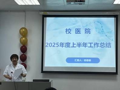 会议由杨春娜院长作上半年工作总结报告。报告全面回顾了伟德国际victor19462025年上半年的工作成效。杨院长指出,半年来,伟德国际victor1946始终坚守“以学生健康为本,为师生保驾护航”的服务宗旨,在扎实履行核心职责的同时,积极开拓创新,在多个关键领域取得显著进展:医疗服务保障能力持续提升,传染病防控体系有效运行,急救体系建设不断完善,师生健康管理服务持续优化,内部管理机制也得到进一步加强,为构建健康平安校园奠定了坚实基础。报告同时提到,伟德国际victor1946医护人员积极参与各类专业竞赛与活动,屡获佳绩,进一步提升了医院的专业形象和行业影响力。